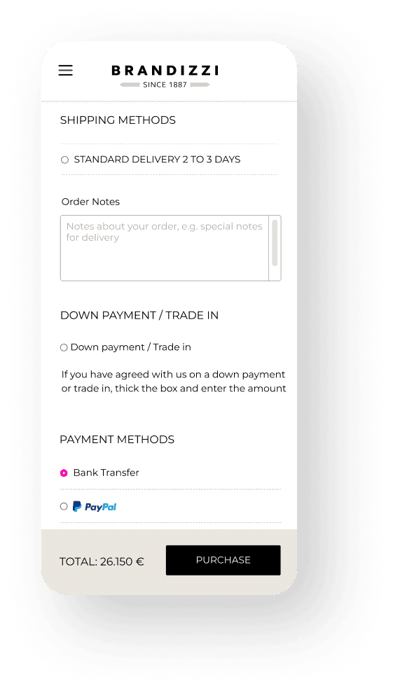 On the billing page, according to the user's needs, I moved the product order to the top, and I kept info like warranty method, payment, financing and shipping /return at the bottom and added a pre-filled field with the total price.