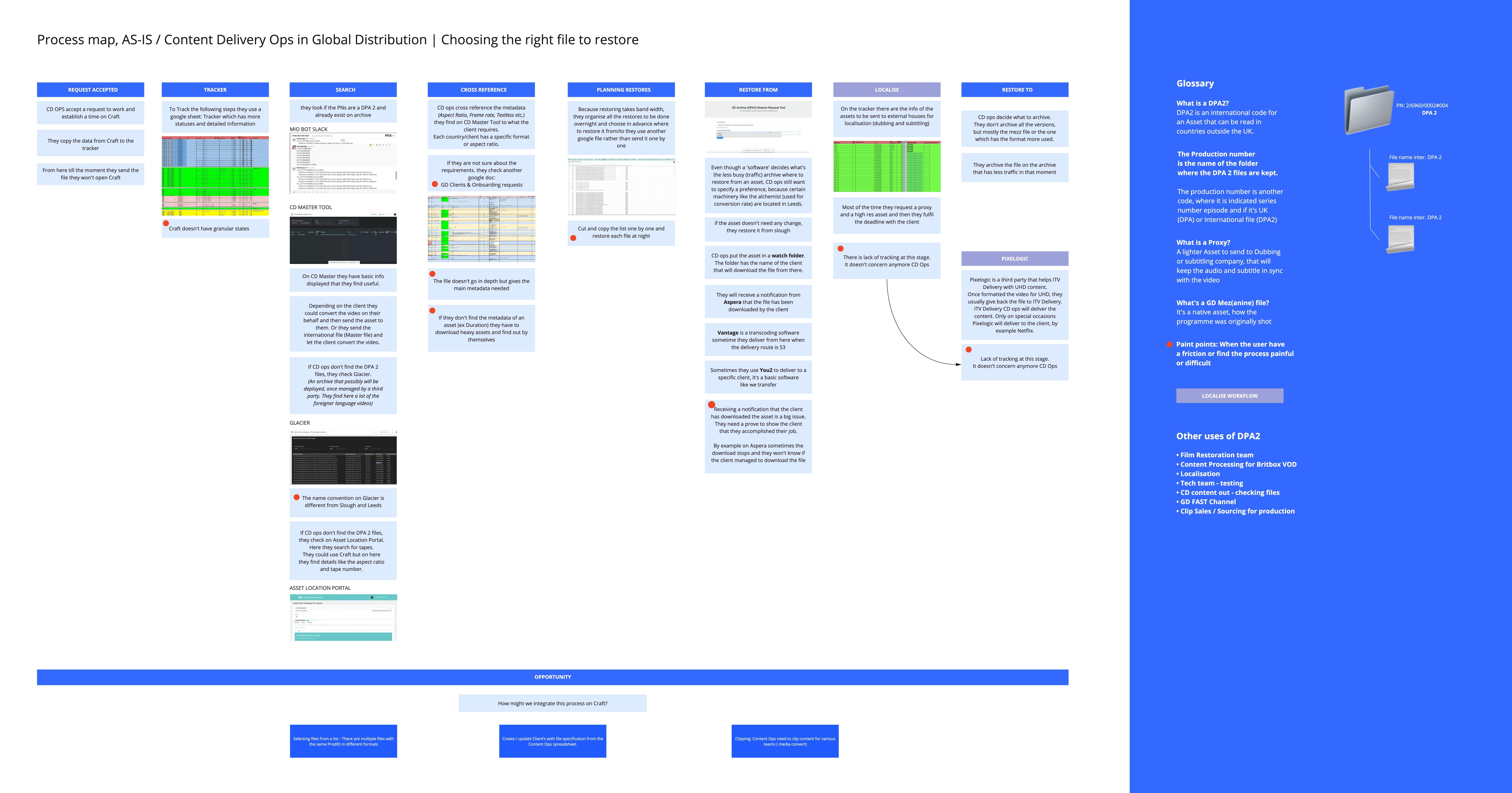 Once mapped their work process from request to delivery, I discovered that most of the difficulties were related to the delivery of an asset. Choosing the right asset and bespoking the asset to the client's requests relied heavily on human decision and experience.