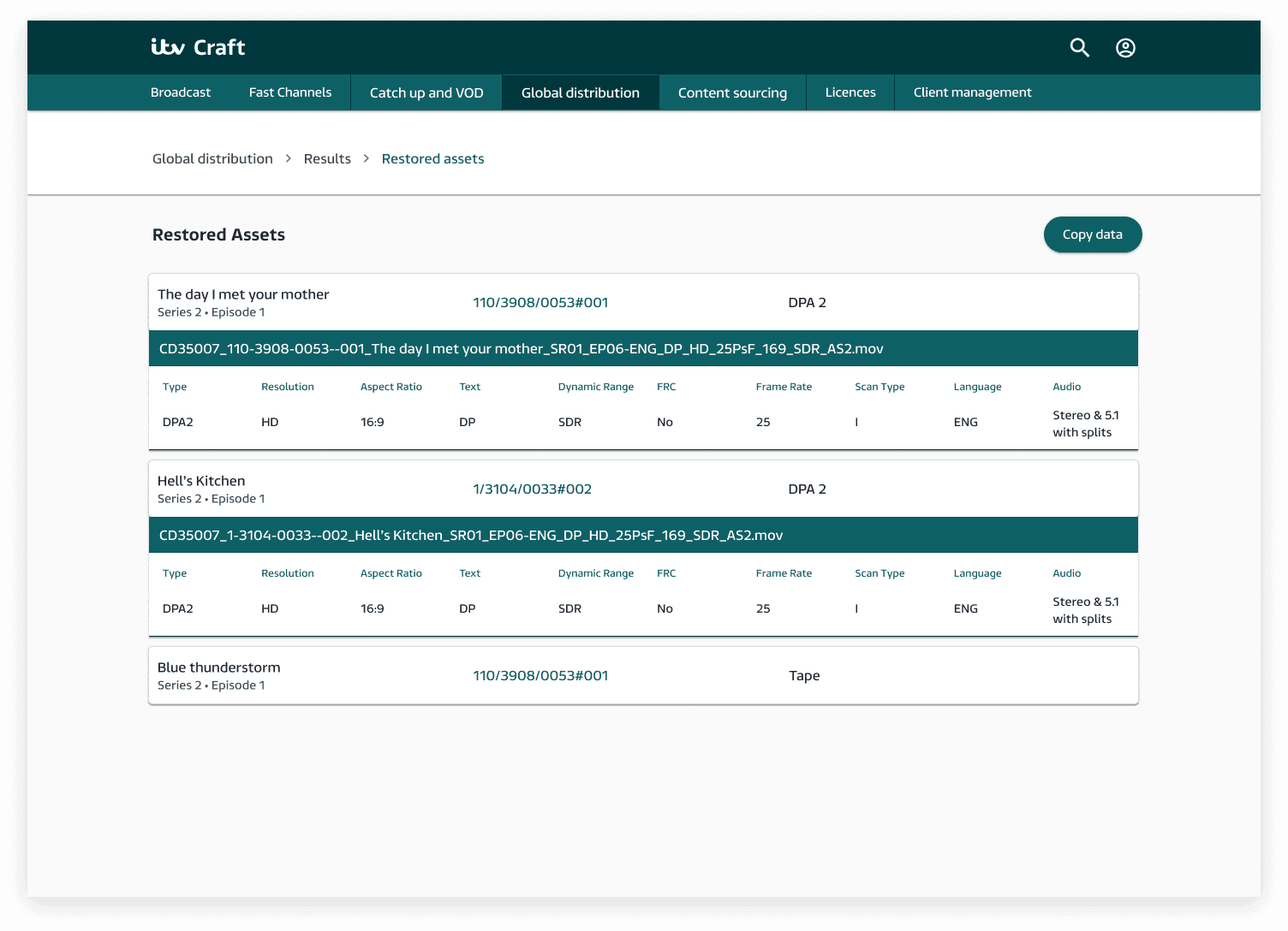 As the only product designer embedded within ITV's 6-person agile team, I was tasked with deeply understanding user needs and identifying strategic opportunities to enhance workflows, balancing user and business objectives. This included creating new features and automating large parts of the process for tracking and distributing media internationally. That involved extensive research, planning, and rigorous usability testing.