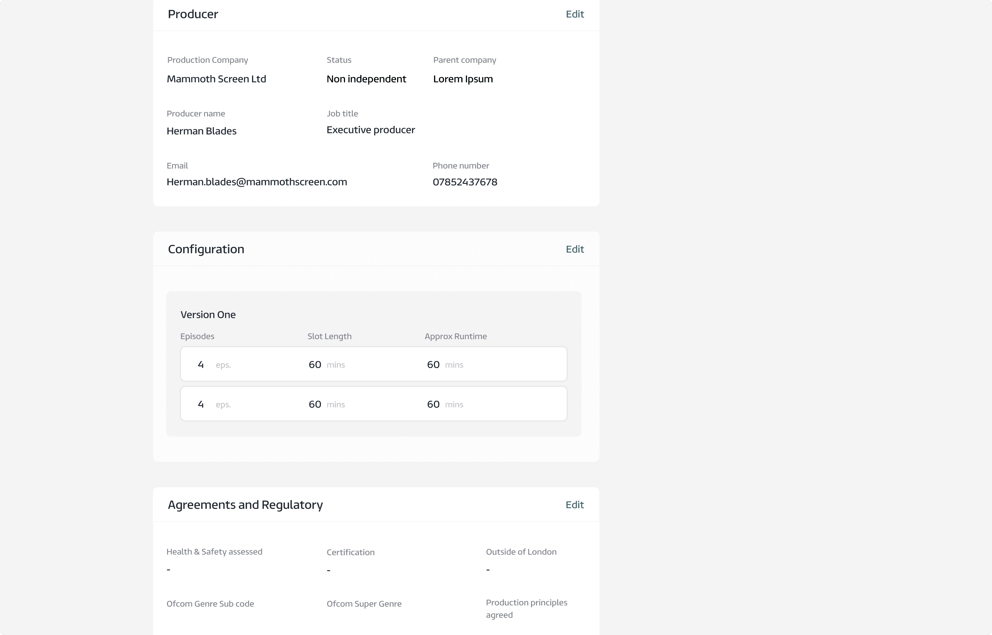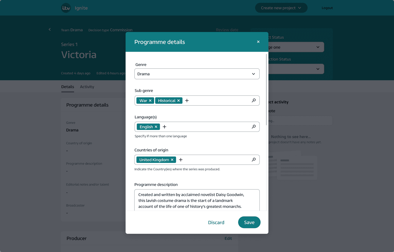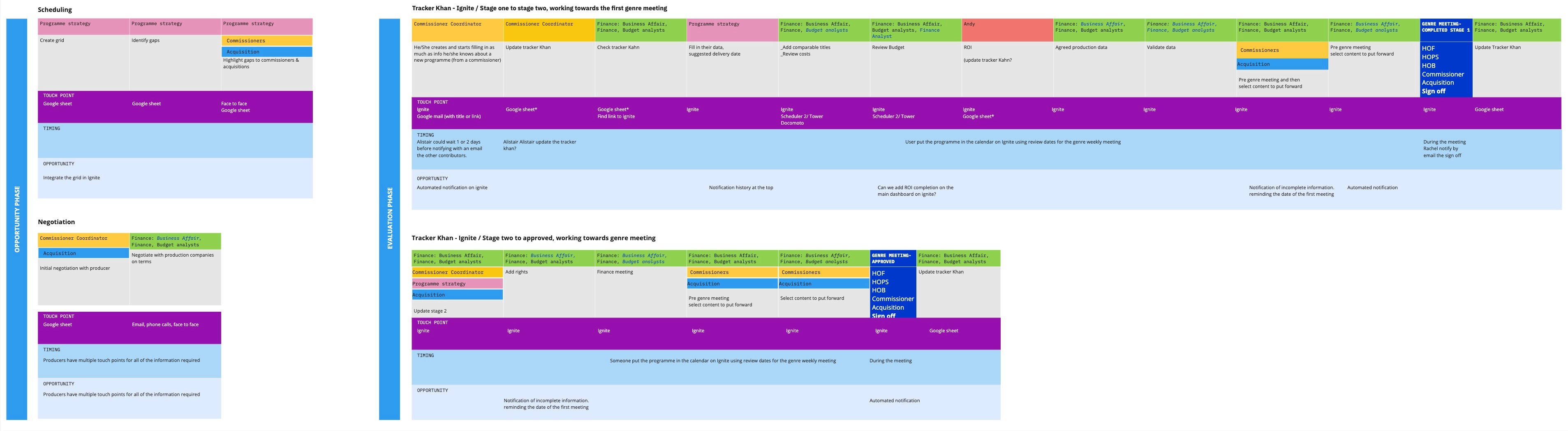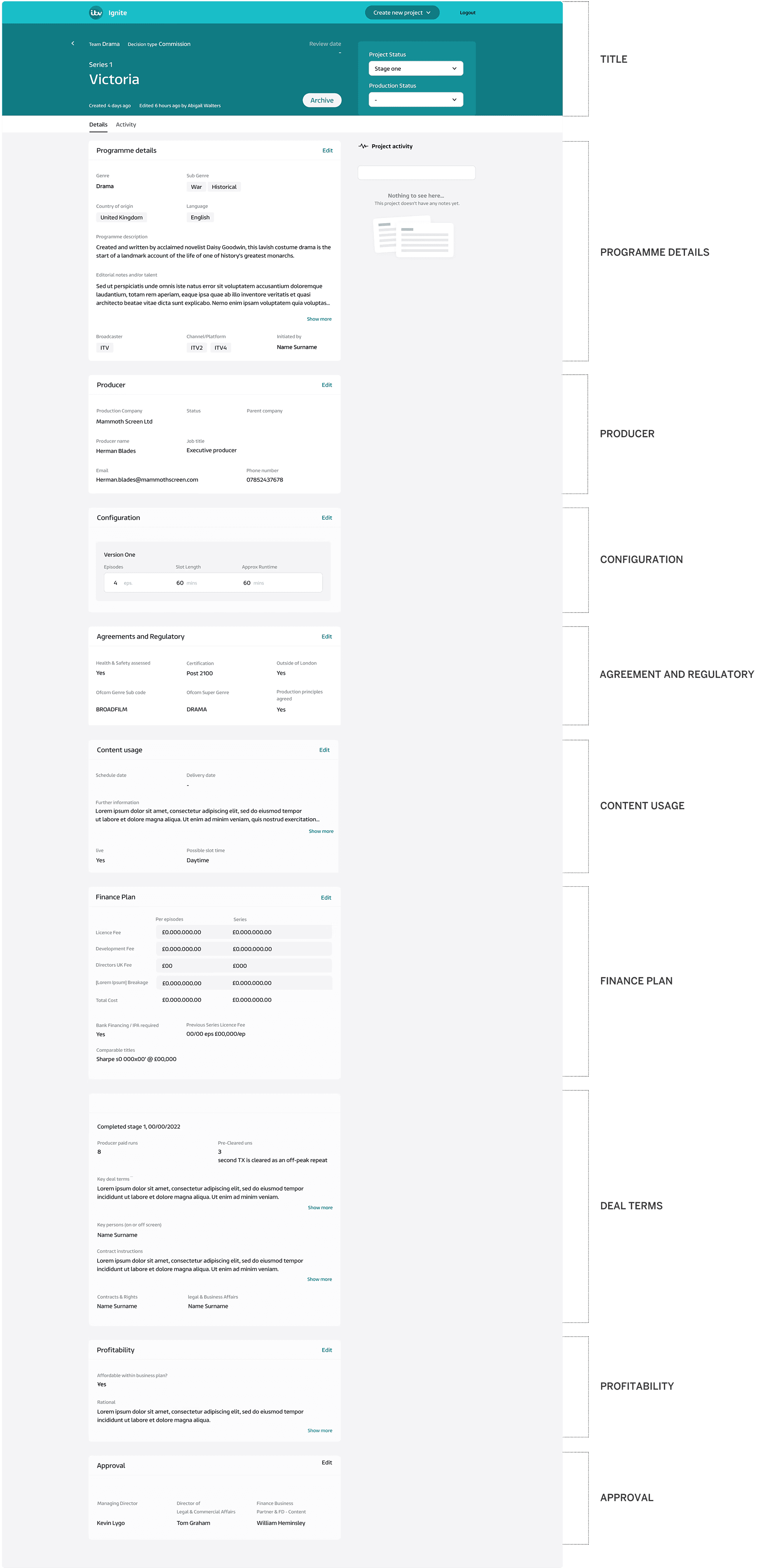 M&E onboarding. A key challenge was making Ignite accessible to various ITV stakeholders like Finance, Commissioners, and Legal. Each requires different data to decide if greenlighting a production makes sense. With the high per-program investment, ITV undertakes a rigorous, multi-stage decision process. This drawn-out timeline was an issue. Our goal was to streamline data digestion for each department to enable timely, informed choice and reduce the disjointed usage of spreadsheets centralising the data on one platform.